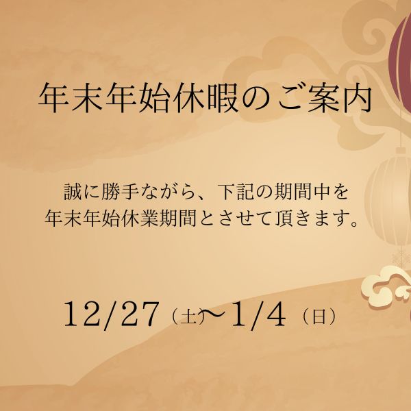 お客様各位 拝啓 時下益々ご清祥の事とお慶び申し上げます。 日頃より弊社へ格別のご愛顧を賜り、厚く御礼申し上げます。 誠に勝手ながら、下記の期間中を年末年始休業期間とさせて頂きます。 ホームページからのお問い合わせ等は、 […]